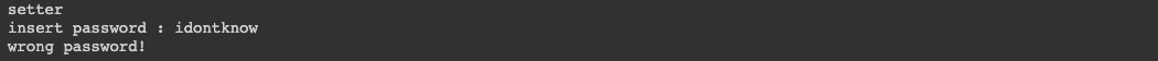 이렇게 되면 위의 구문처럼 직접적으로 바꾸는 것은 불가능해지지만 원래 함수대로 비밀번호 값을 제대로 입력한다면 값을 변경할 수 있다.