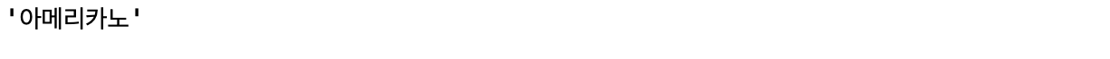 cafe.loc[0, "메뉴"] #첫번째 행 데이터의 메뉴
