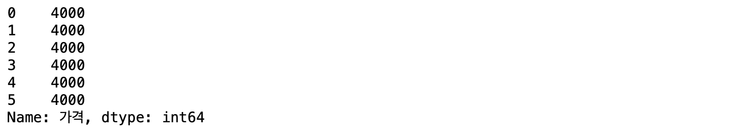2. 새로 생긴 가격 column의 모든 값이 4000으로 할당됩니다.