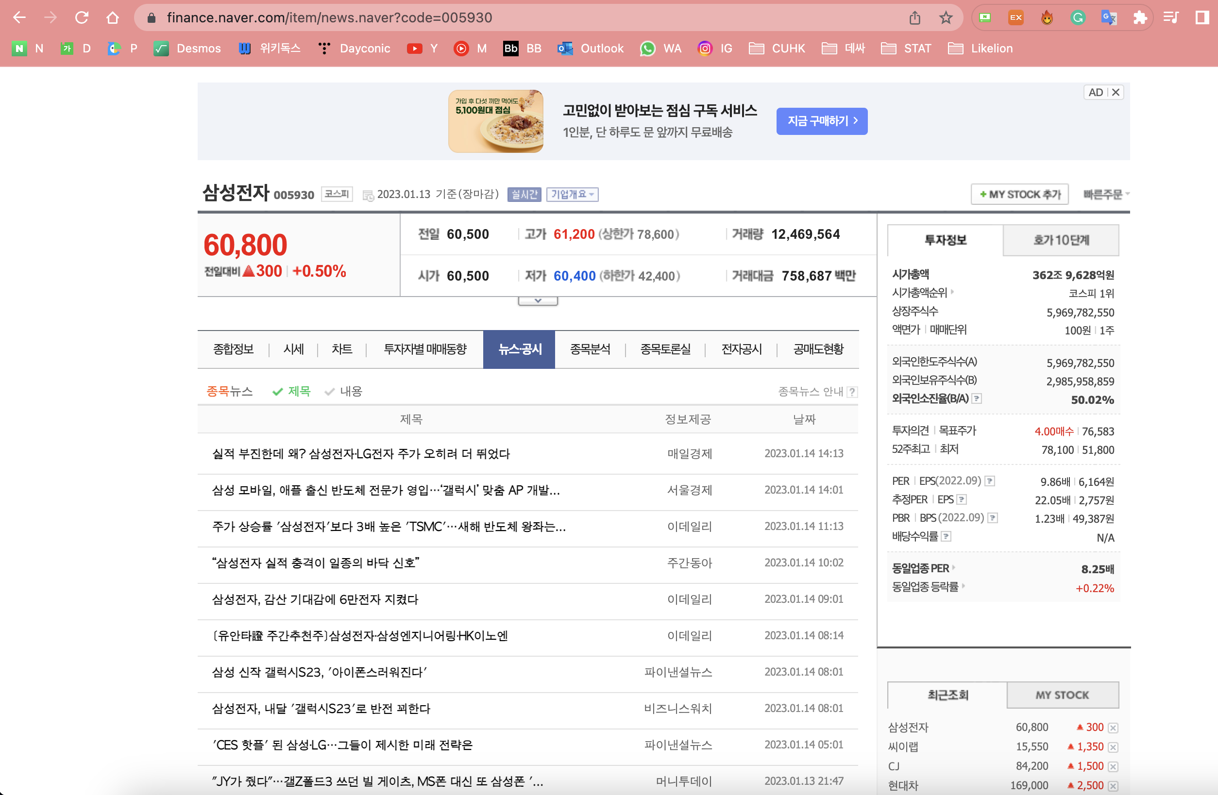 네이버의 종목 코드는 005930 입니다. 즉, 위의 URL을 살펴보면 code=005930 이라고 적힌 것을 확인할 수 있습니다.