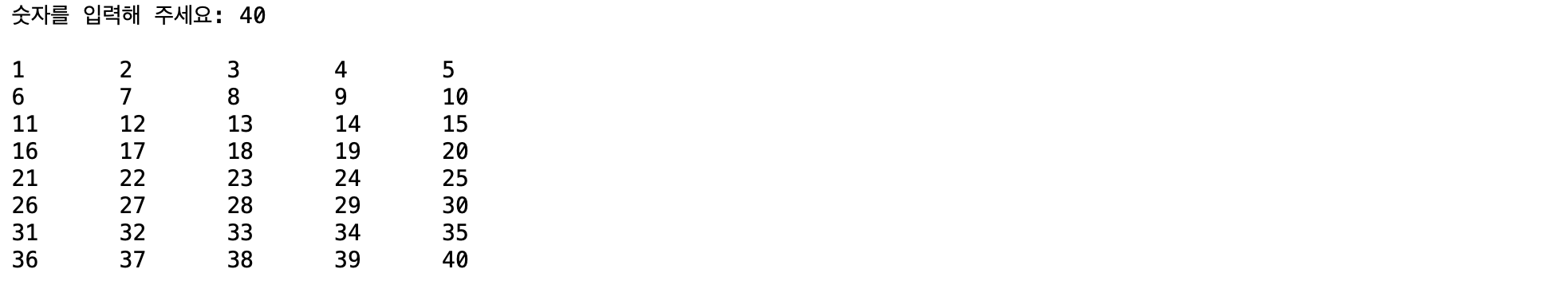 2. 원하는 숫자 입력시 5의 배수마다 줄바꿈하기