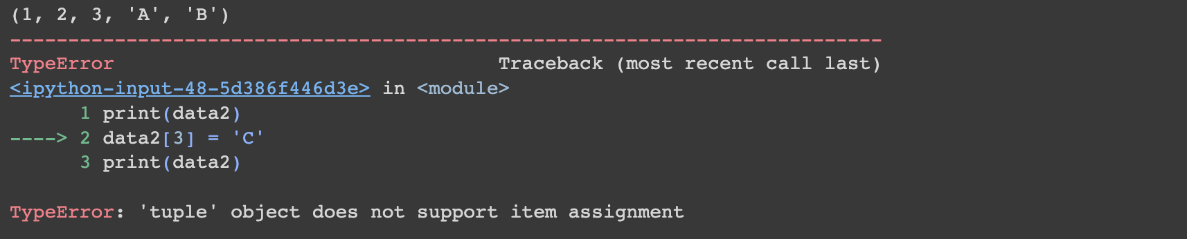 에러가 뜨면서 튜플은 수정이 불가하다는 문구가 나옵니다.